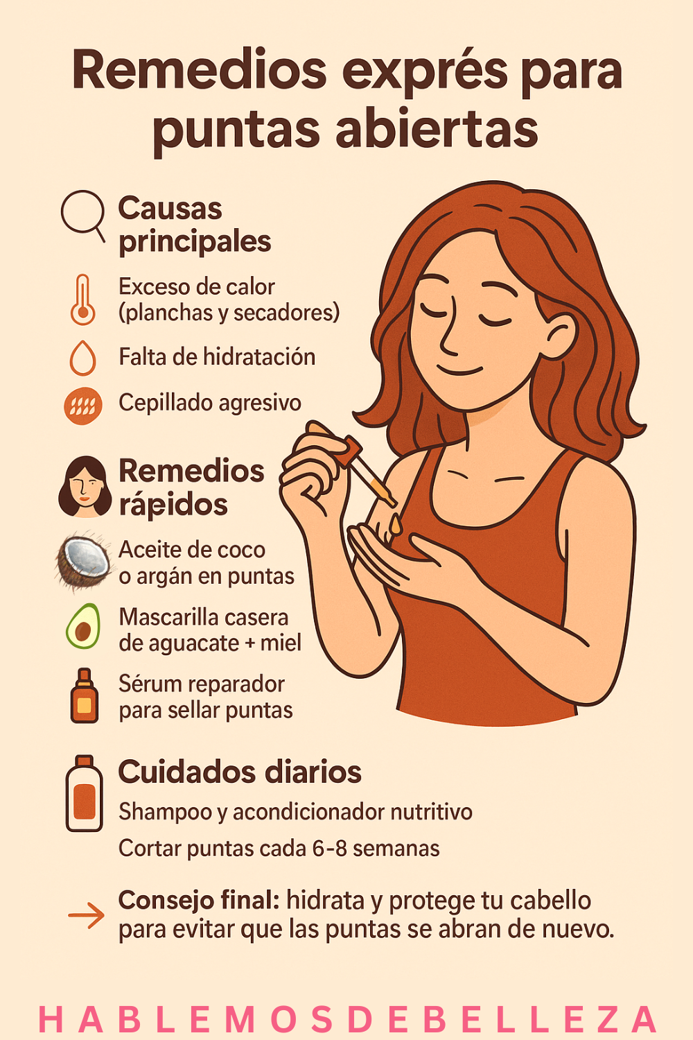 Pero ¡tranquilas! No todo está perdido. Hoy os traigo unos remedios exprés que sí funcionan para decirle adiós a las puntas abiertas y lucir un cabello impecable.