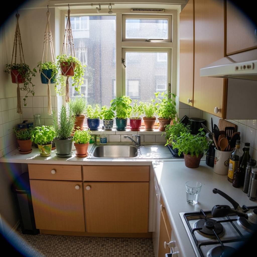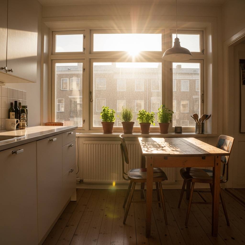 La luz del sol es el mejor decorador para una cocina pequeña. Evita las cortinas pesadas o los objetos que bloqueen la entrada de luz. Mantener las ventanas despejadas o usar visillos muy finos permite que el exterior se integre, dando una sensación de libertad. Una cocina bien iluminada siempre parecerá más limpia y espaciosa. Además, la luz natural resalta los colores y las texturas de tus plantas y muebles humildes, creando una atmósfera vibrante y llena de energía positiva.