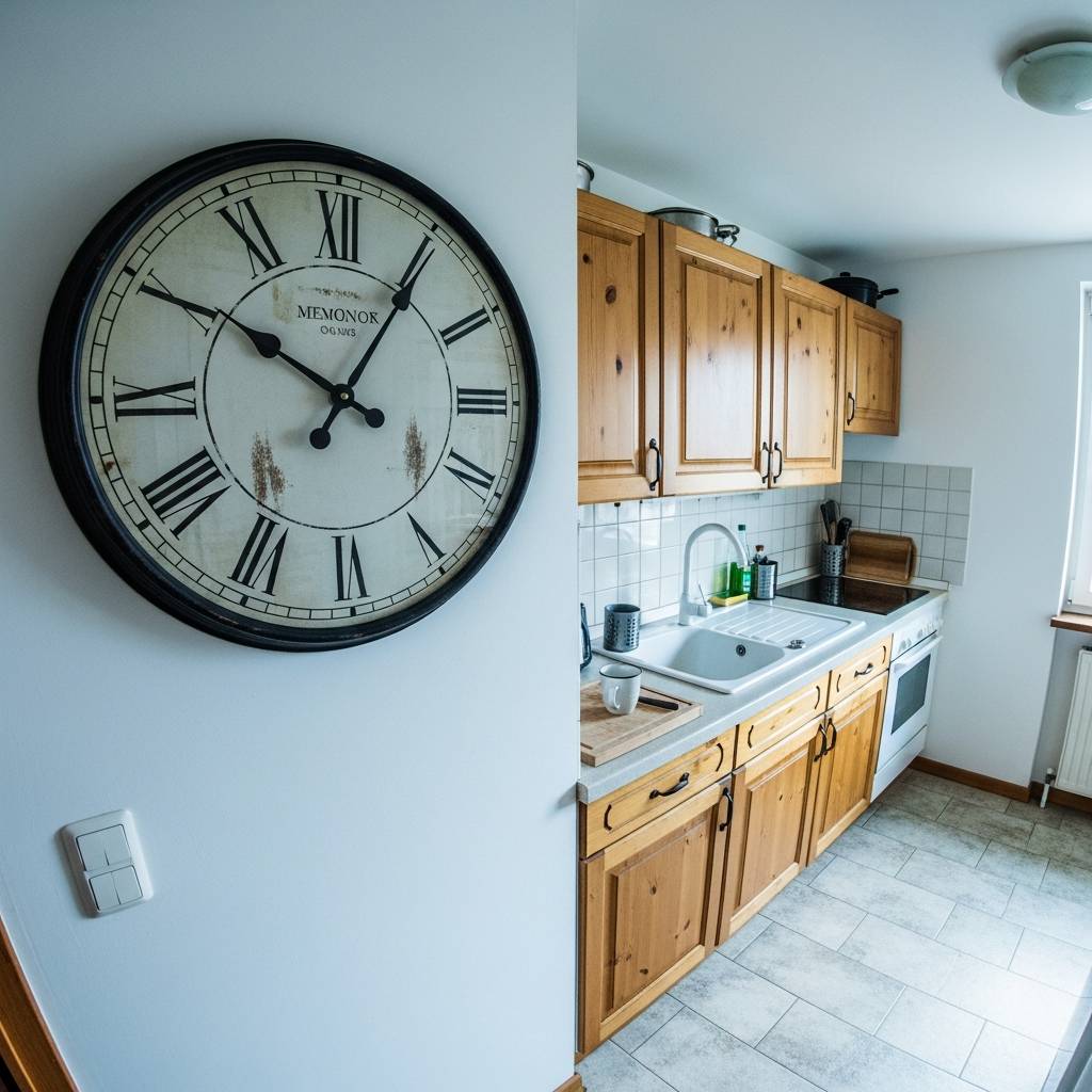 Un reloj de pared con un diseño clásico o antiguo puede ser el protagonista absoluto de una de las paredes. Además de ser útil para controlar los tiempos de cocción, aporta un aire de nostalgia y elegancia sencilla. En las cocinas pequeñas, es mejor tener una sola pieza decorativa grande y significativa que muchos objetos pequeños que generen desorden visual. Un buen reloj es un símbolo del paso del tiempo y de los momentos compartidos en el corazón de la casa.