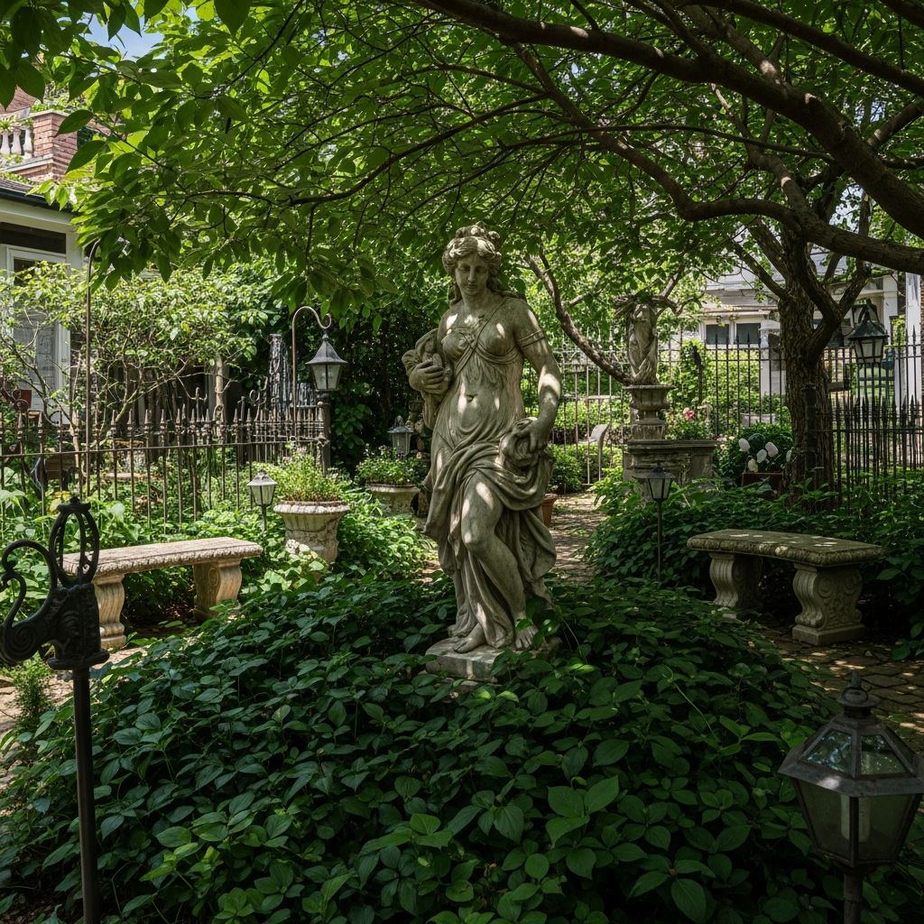 Añadir estatuas o pequeñas esculturas de estilo clásico puede transformar tu jardín en una galería al aire libre. Piensa en bustos romanos, figuras de ninfas o pequeños ángeles de piedra.