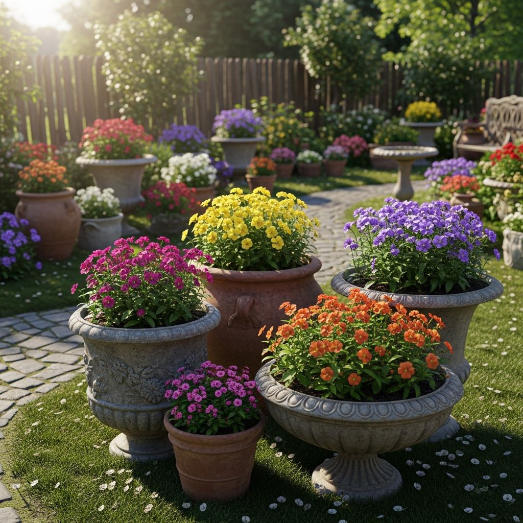6. Macetas de Terracota y Jardineras de Piedra Envejecida