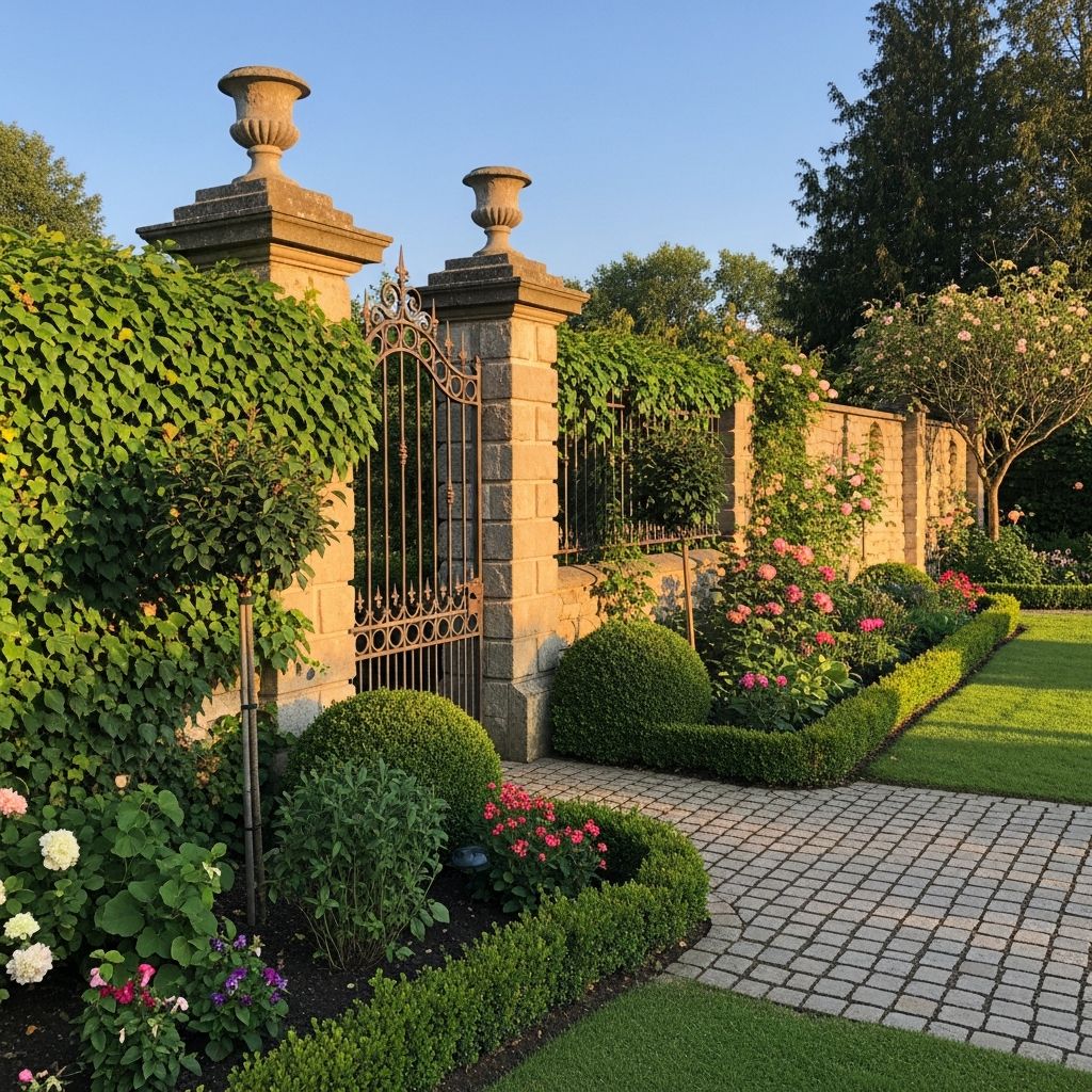 Estas estructuras pueden dar la sensación de un jardín más establecido y maduro, casi como si hubieran estado allí por siglos. Considera la integración de una puerta de hierro forjado para un punto de entrada aún más dramático.