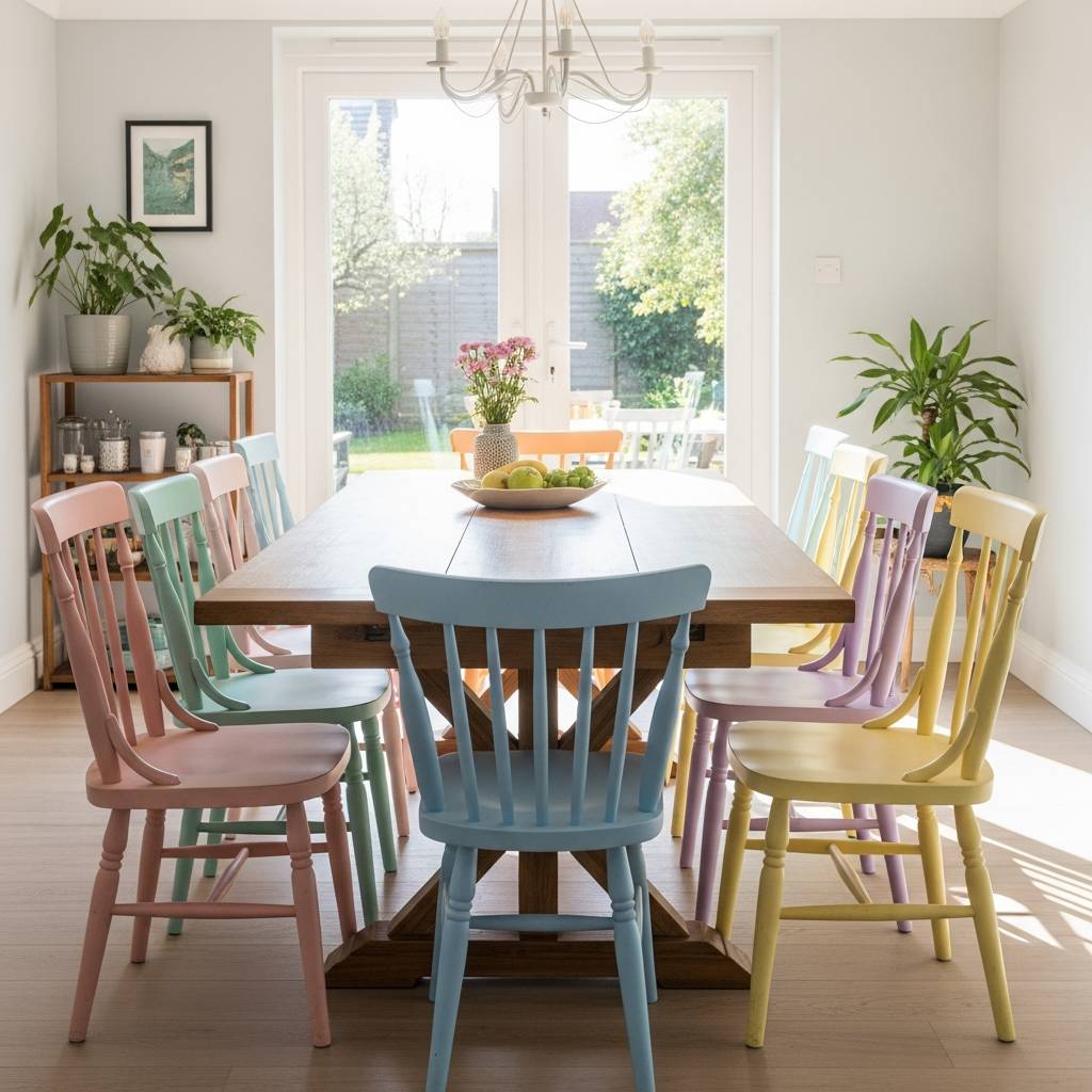 4. Sillas de Comedor en Colores Pastel Mezclados