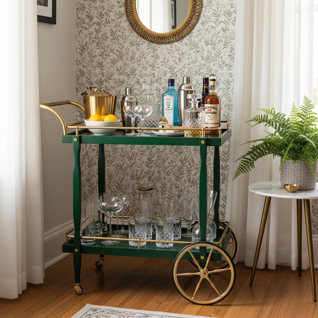 16. Carrito de Bar en Verde Esmeralda y Dorado