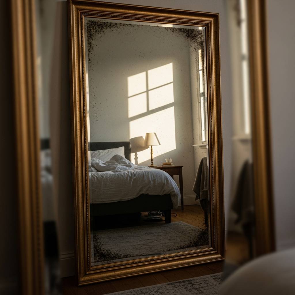 20. Espejo de Cuerpo Entero con Marco Dorado Envejecido