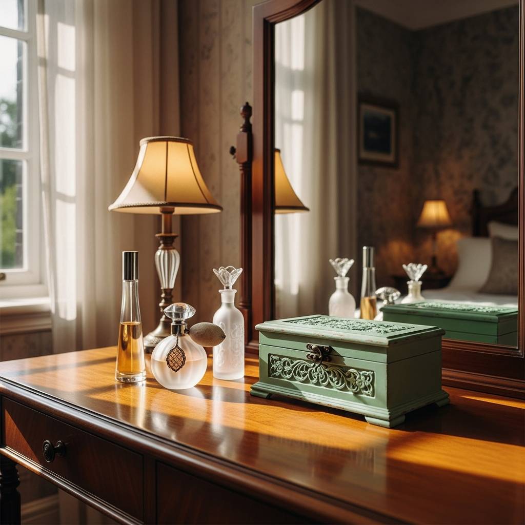 22. Joyero Antiguo en Verde Menta sobre el Tocador