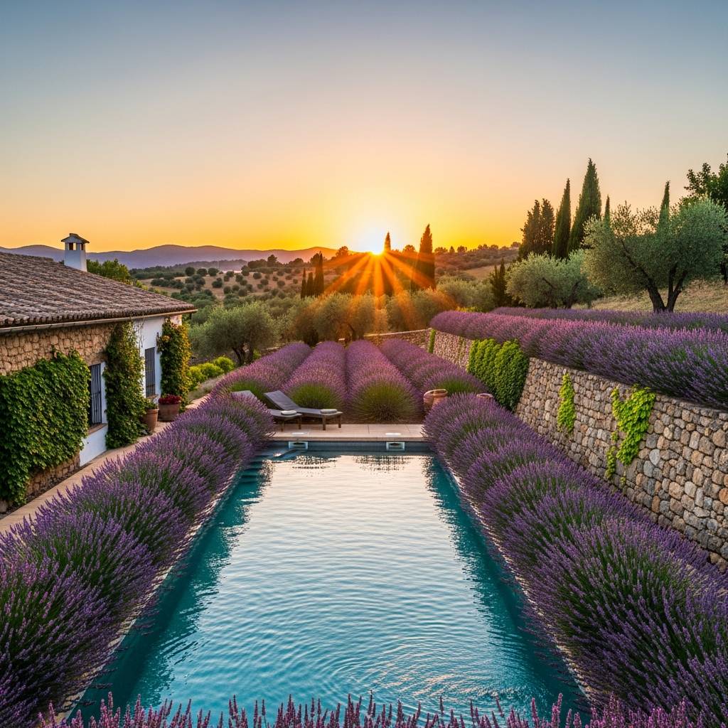 No hay nada como salir del agua y que te reciba el aroma de la lavanda. Es una planta muy común en los jardines de Castilla y el interior de España por su gran resistencia al calor y la sequía. Te recomiendo plantarlas en hileras largas bordeando el camino hacia la ducha exterior; el contraste del color lila con el azul turquesa del agua es sencillamente espectacular y muy relajante.