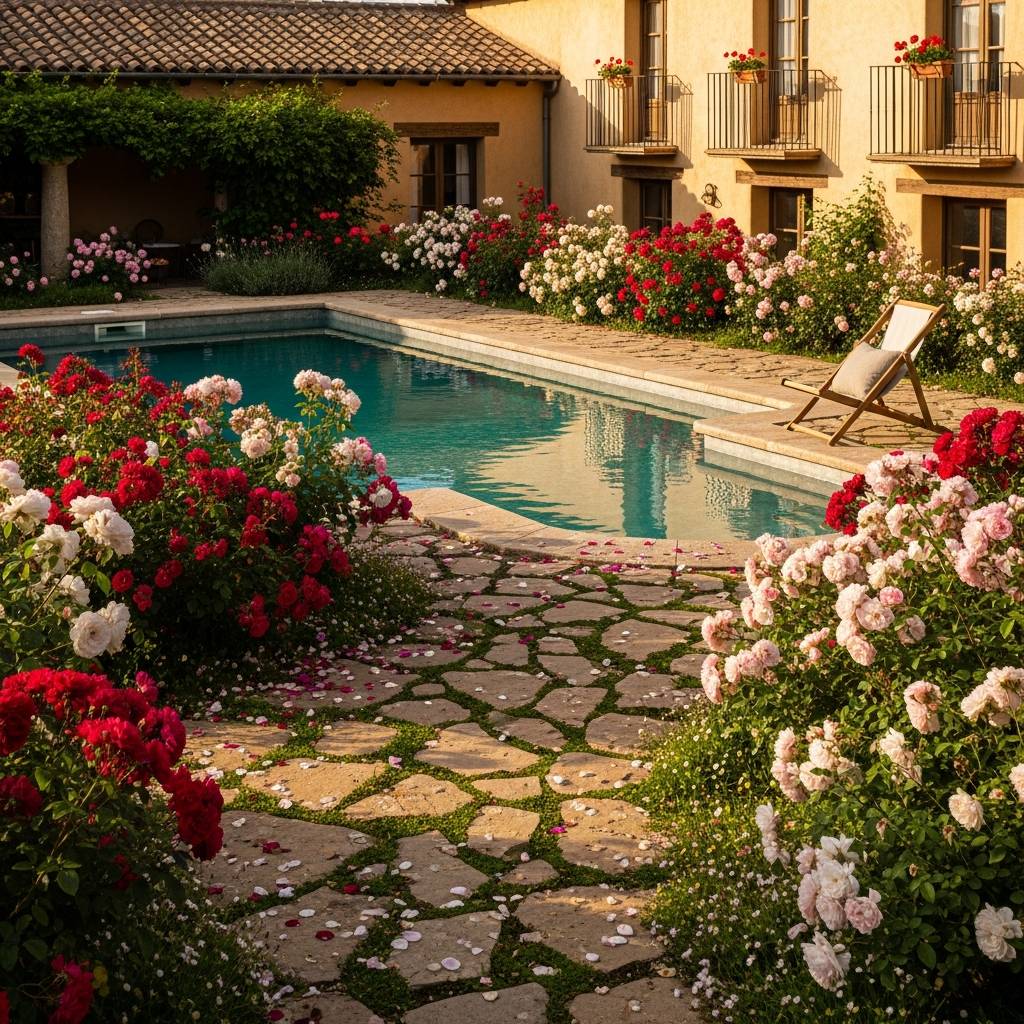 Aunque parezca atrevido, unos rosales bien seleccionados pueden ser el alma de tu piscina. Yo prefiero las variedades tipo arbustivo que florecen continuamente. Ubicarlos en un nivel un poco más elevado que la piscina evita que las espinas sean un problema y permite disfrutar de su belleza. Es una opción que veo mucho en casas de campo renovadas, donde se busca un aire romántico y tradicional.