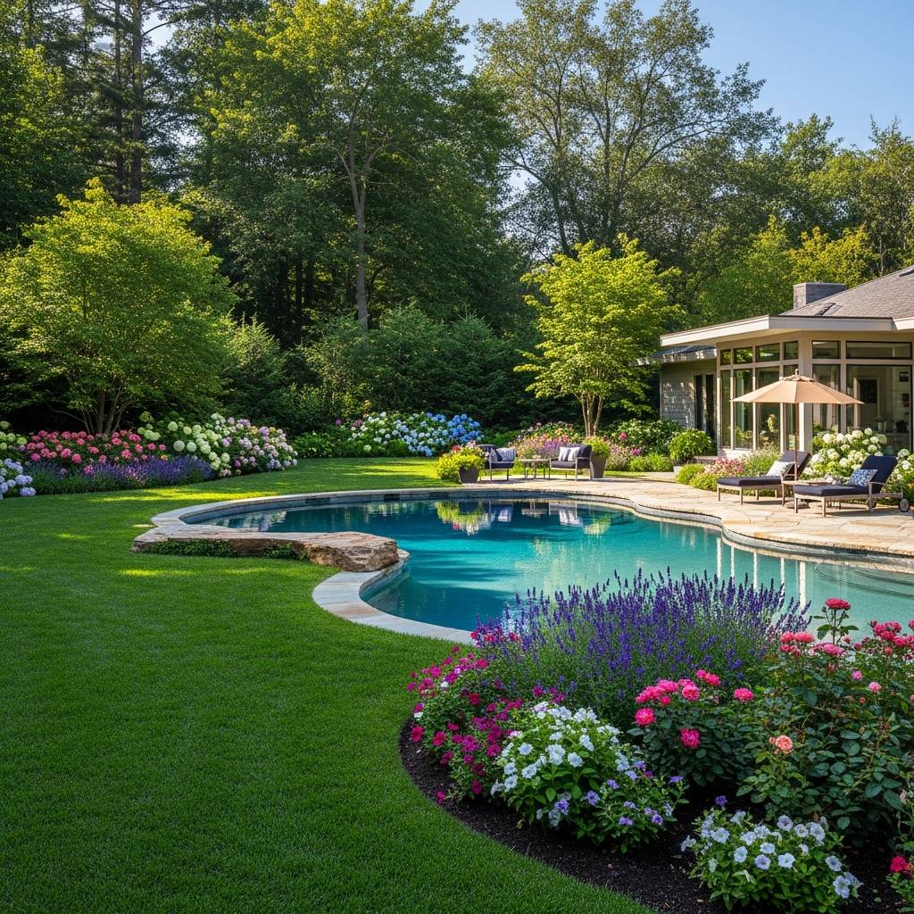 Aunque técnicamente no es una planta individual, la combinación de césped bien cuidado con pequeños macizos de flores es el sueño de muchos. En el norte de España, donde el clima ayuda, tener el césped llegando casi al borde de la piscina es una delicia para los pies. Me encanta la sensación de caminar descalzo por la hierba fresca antes de darme un chapuzón bajo el sol.