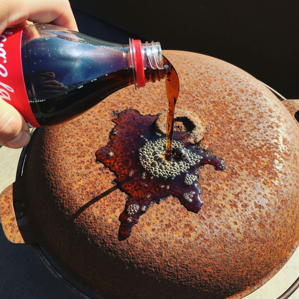 ¿Tienes una olla o sartén de hierro fundido con algunas manchas de óxido? Antes de pensar en tirarla, ¡prueba con un refresco de cola! Sí, esa bebida que todos conocemos contiene ácidos (como el ácido fosfórico) que son sorprendentemente efectivos para disolver el óxido.