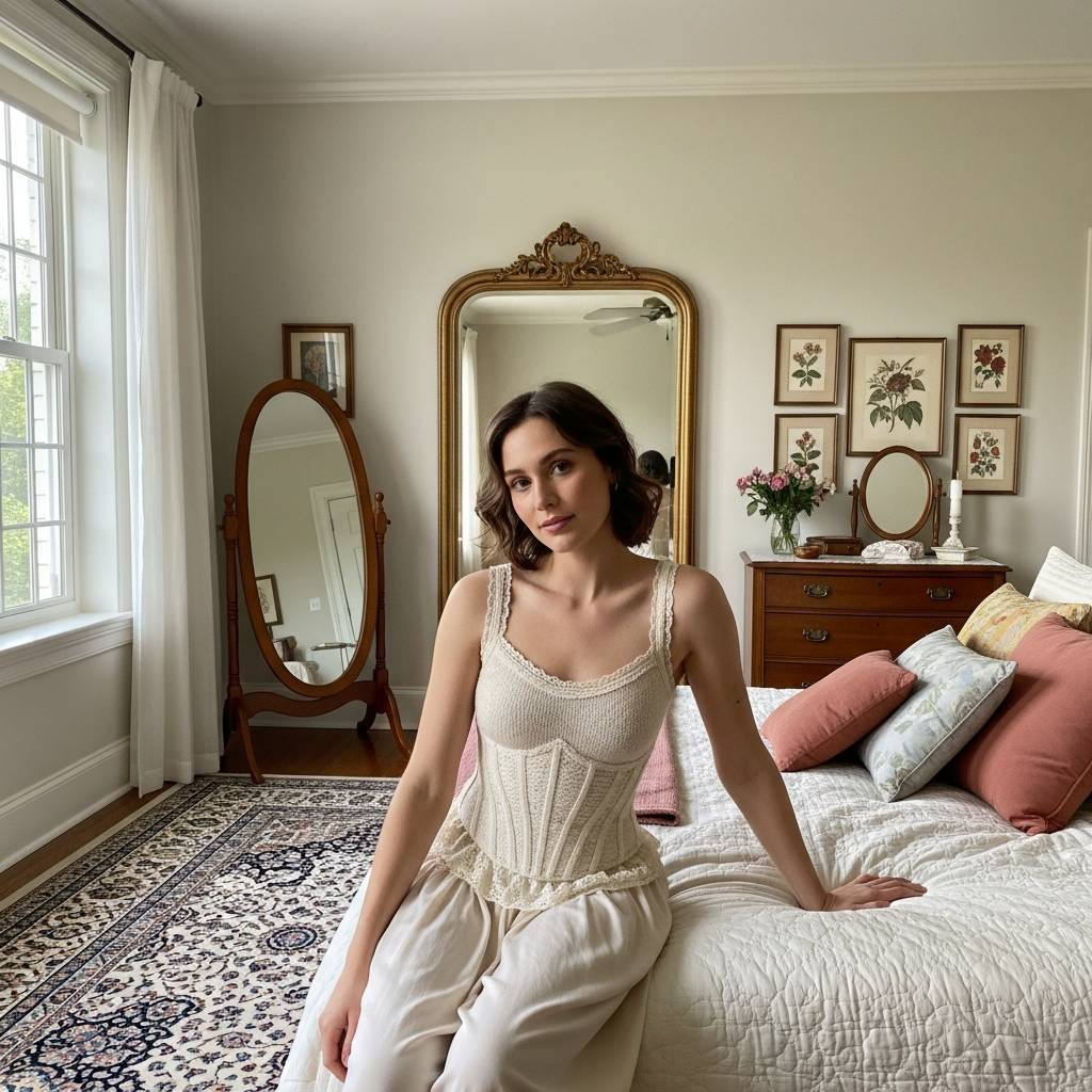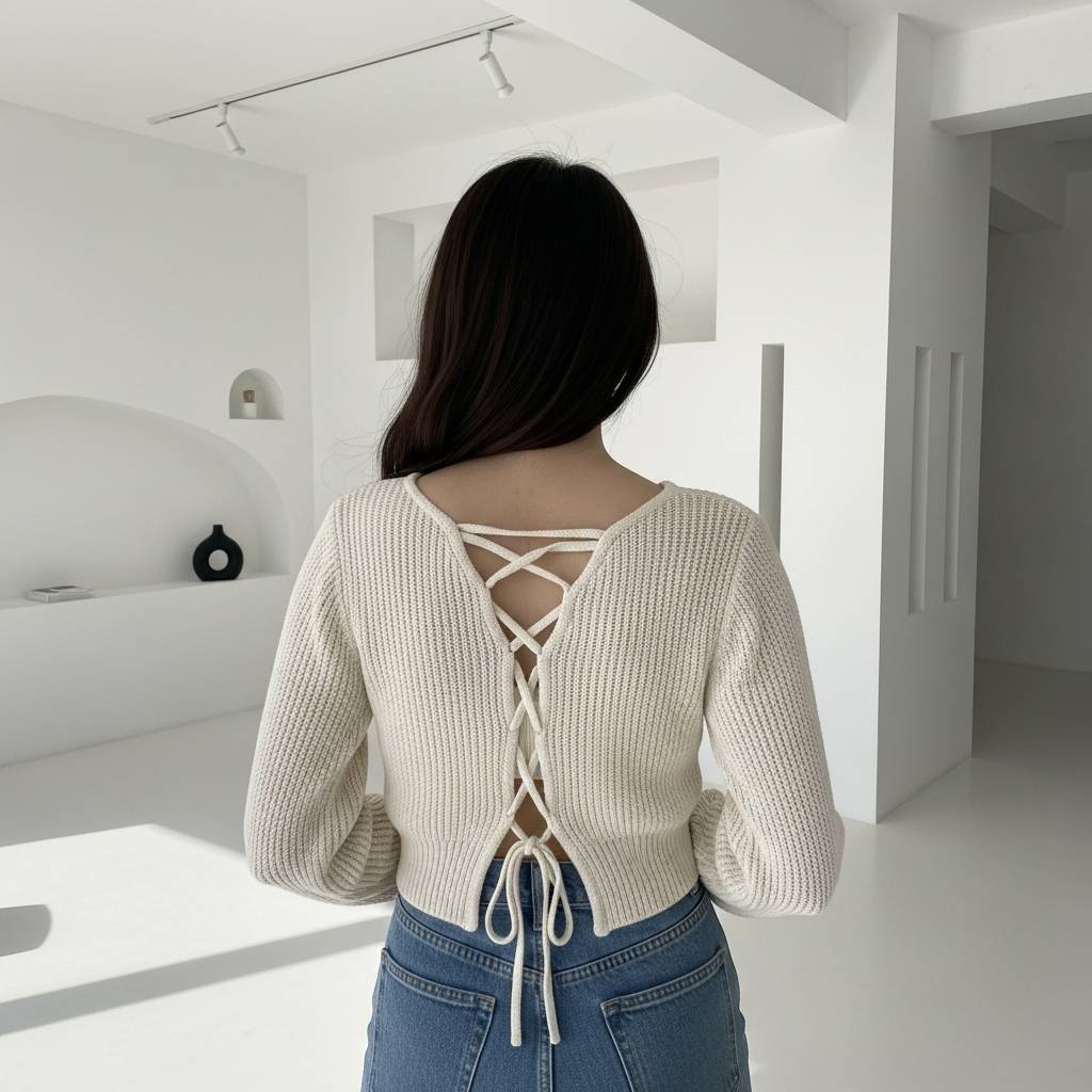 La estructura del corset se traslada al mundo del tejido para ofrecer una prenda que moldea la figura con suavidad. A diferencia de los corsets tradicionales rígidos, la versión tejida es elástica y cómoda, adaptándose a los movimientos del cuerpo. Con detalles de costuras marcadas que imitan las varillas, esta blusa es perfecta para quienes aman el estilo ‘coquette’ o vintage con un toque artesanal.