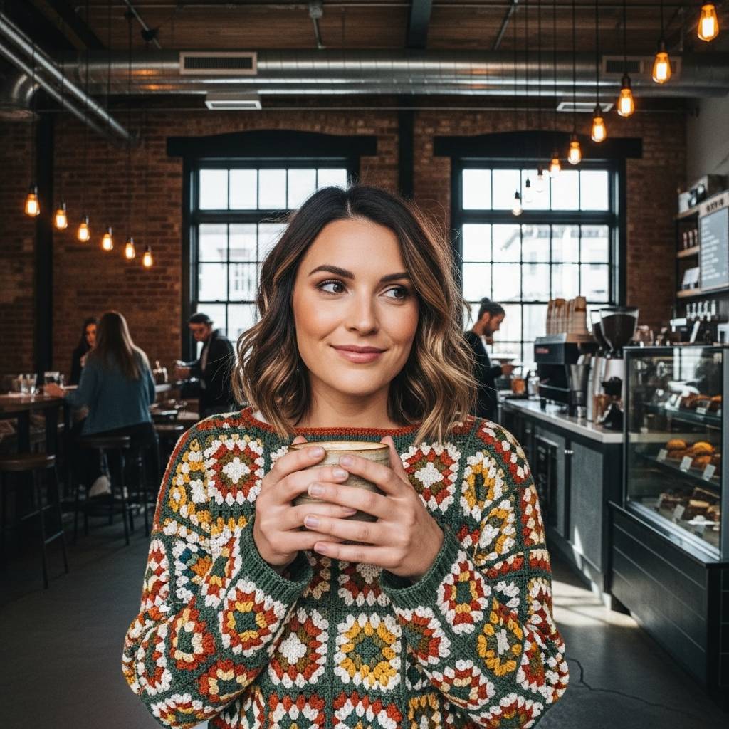 Los cuadros de la abuela o ‘granny squares’ han regresado con una estética renovada. En lugar de los colores estridentes del pasado, la tendencia actual apuesta por paletas monocromáticas o tonos tierra que se integran fácilmente en cualquier outfit. Esta blusa aporta un aire nostálgico pero muy a la moda, ideal para un look festivalero o para un café con amigas. Su estructura modular permite crear diseños asimétricos muy interesantes.