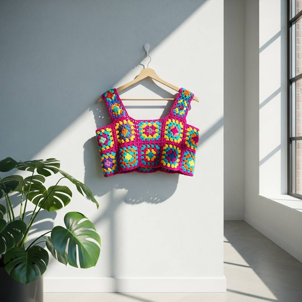 2. Crop Top de Cuadros de Abuela (Granny Squares)