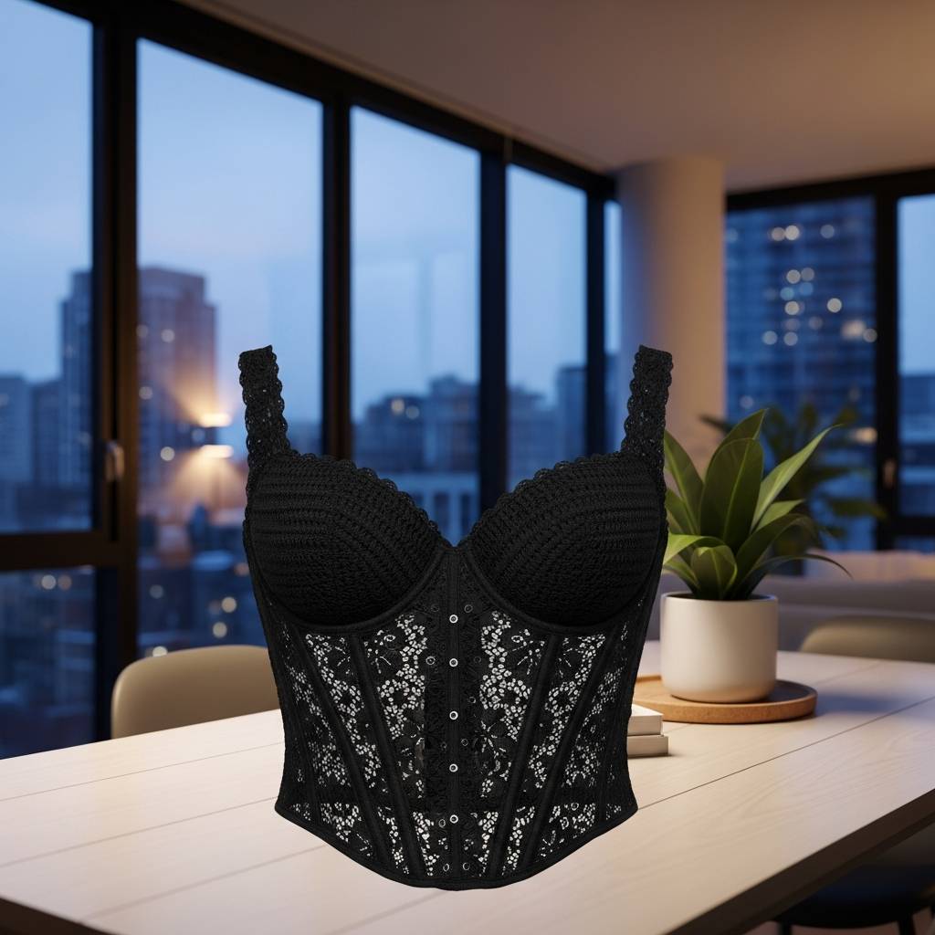 Esta es una de mis tendencias favoritas actuales. Utilizando puntos más densos y una construcción más rígida, se puede lograr un top de ganchillo que imite la forma de un corsé. Es increíblemente favorecedor y le da un toque sofisticado a la técnica artesanal. Recomiendo usar colores sólidos como el negro o el blanco para que los detalles de la estructura destaquen.