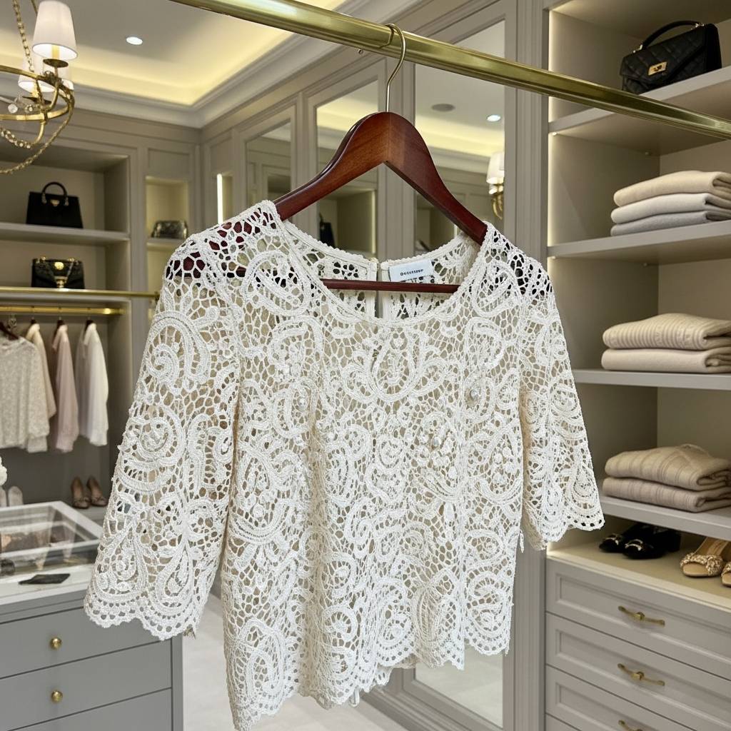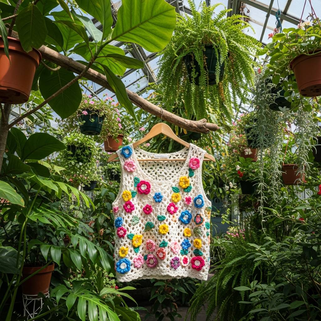 Si te gusta destacar, un top con flores tejidas en relieve es para ti. Las flores añaden una textura tridimensional que hace que la prenda parezca una obra de arte. Me encanta la idea de usar diferentes tonos de un mismo color para crear un efecto degradado muy sutil y elegante que eleva instantáneamente cualquier conjunto sencillo.