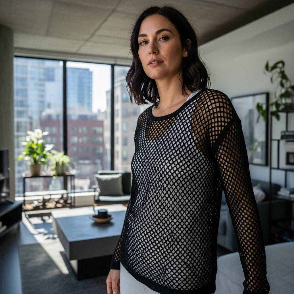 El punto de red es tendencia total este año. Se trata de una malla abierta que se suele usar sobre otras prendas, creando capas interesantes. Es una forma genial de añadir textura a un outfit sin añadir calor. Yo lo uso mucho sobre un top liso de algodón para darle ese toque artesanal y moderno sin mucho esfuerzo.