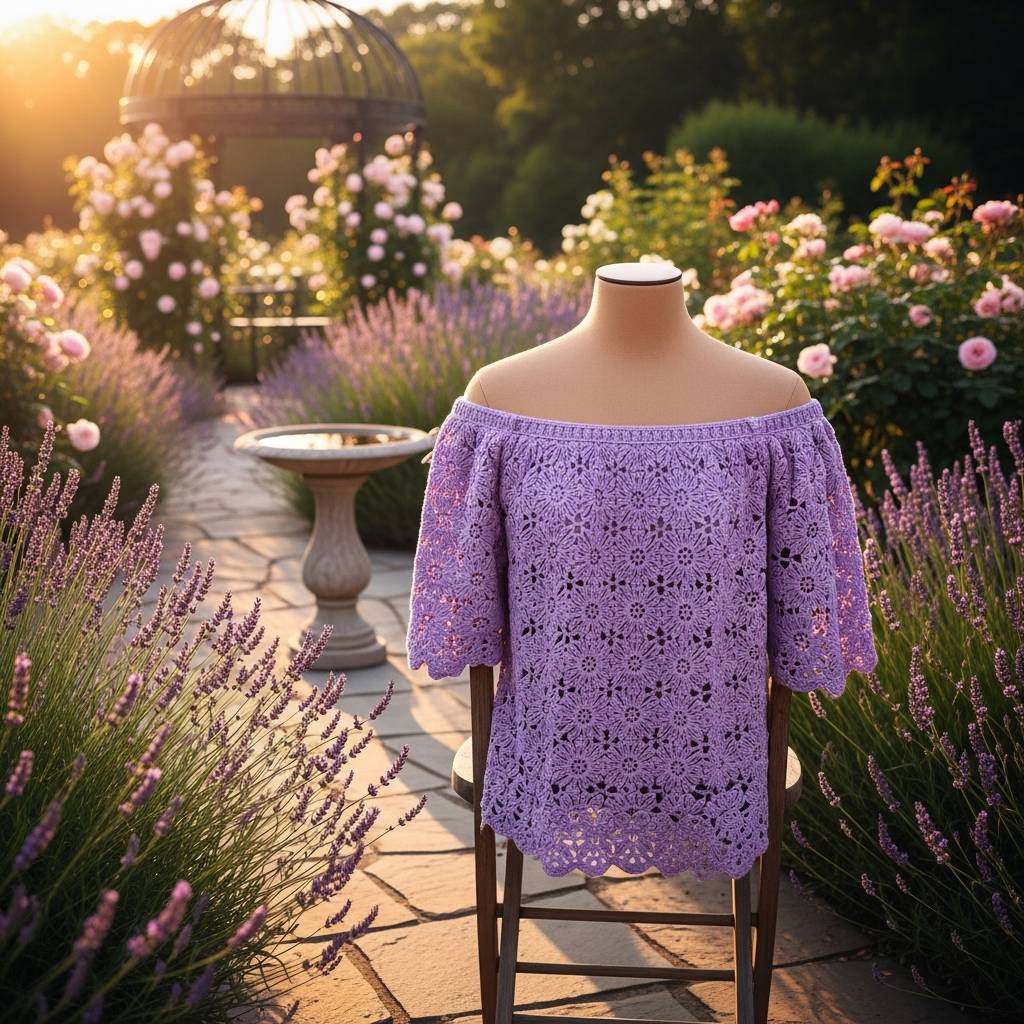 Este corte es la definición de romanticismo. Un top de ganchillo que deja los hombros al aire es increíblemente femenino y favorecedor. Puedes tejerlo con un volante ancho en la parte superior para añadir volumen y un aire más festivo. Es mi opción favorita para una cita especial o un evento al aire libre durante el atardecer.