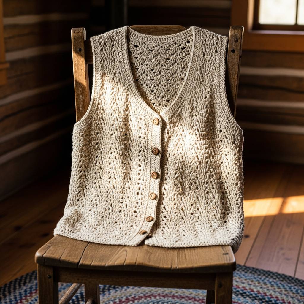 Los chalecos de ganchillo son una pieza de transición maravillosa. Puedes usarlos cerrados como un top o abiertos sobre un vestido. El detalle de los botones le da un aspecto vintage encantador. Personalmente, prefiero los botones de madera para mantener esa estética natural y orgánica que tanto caracteriza a las prendas hechas a mano.